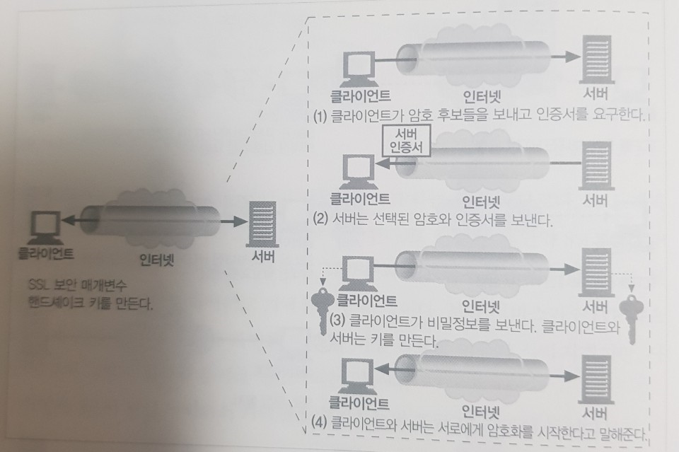 - HTTP를 안전하게 만들기 위한 보안 기술 : 서버 인증, 클라이언트 인증, 무결성, 암호화, 편재성, 효율, 관리상 확장성, 적응성, 사회적 생존성