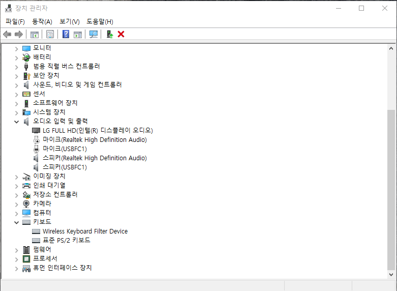 그리고 윈도우를 재시작하면, 키보드 사용과 함께 [표준 PS/2 키보드] 가 다시 활성화돼있는 것을 확인할 수 있다.