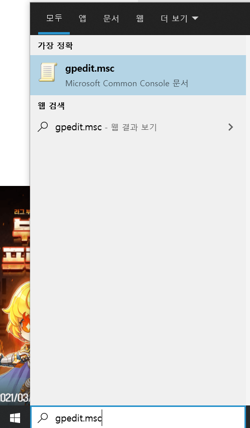 1. 시작- [gpedit.msc] 입력 - 클릭