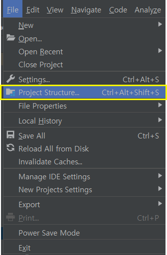 1.File-Project Structure (Ctrl + Alt + Shift + S) 클릭