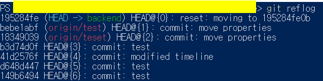 먼저 git reflog로 commit 기록을 확인해보면