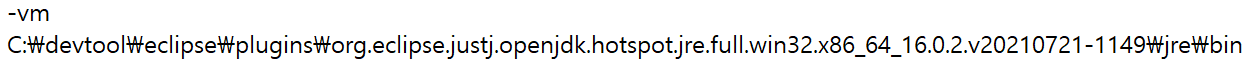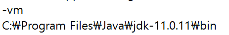 eclipse.ini를 확인하니 vm이 다음과 같이 되어있었다.