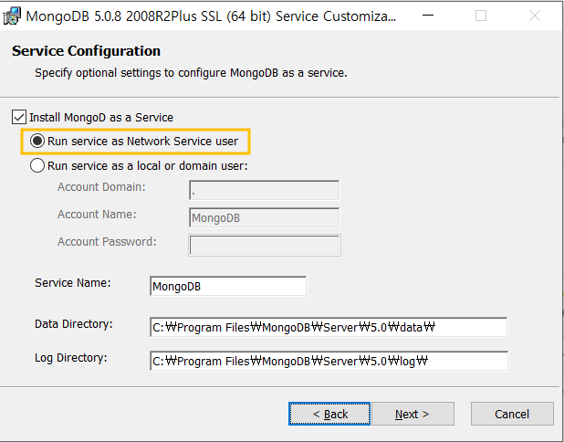 나는 C:\Program Files\MongoDB\Server\5.0\bin 에 있는 mongod.cfg파일에 들어가 security부분을 수정해주었다