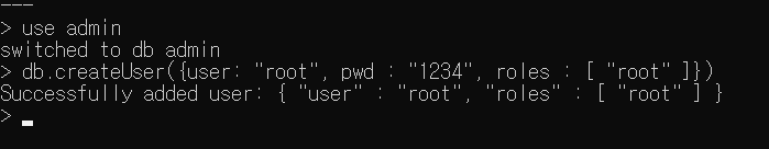 MongoDB는 데이터베이스마다 인증된 사용자로 관리할 수 있으므로, 사용자 계정을 추가한다.