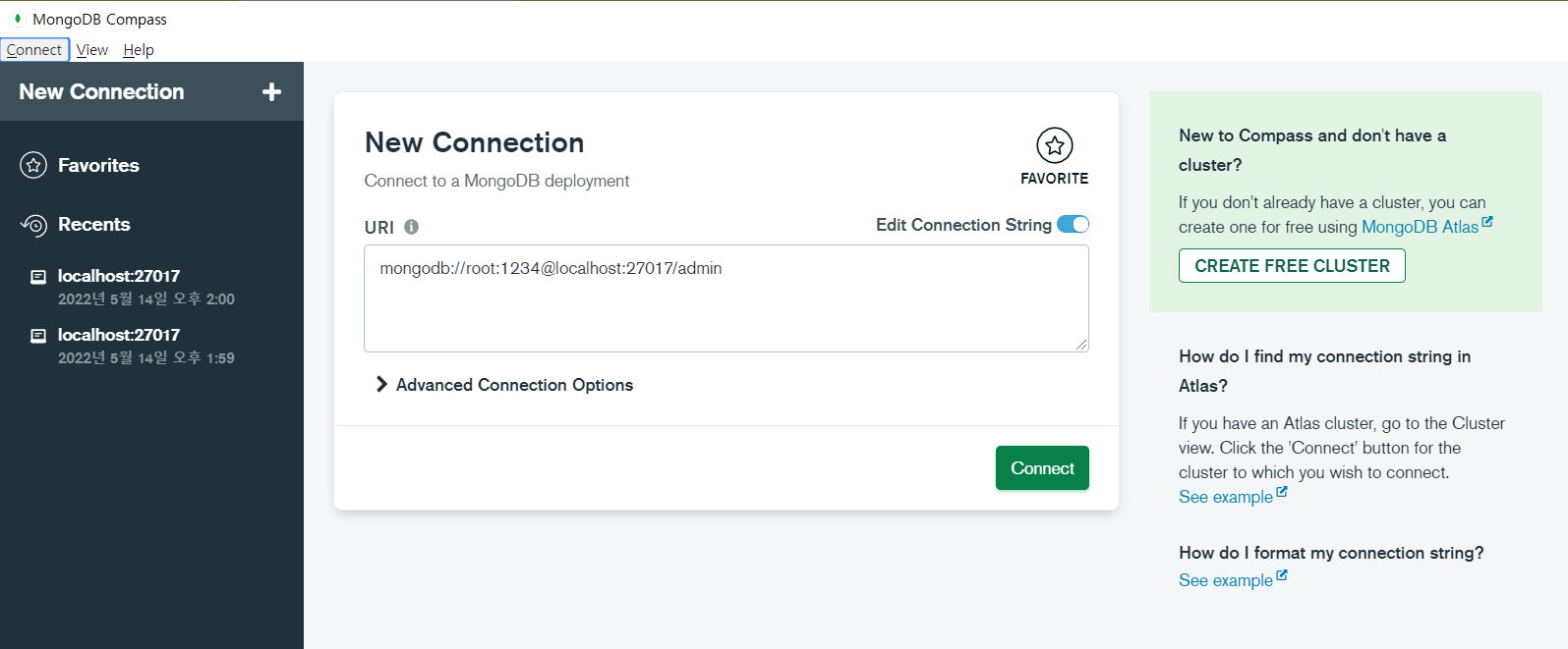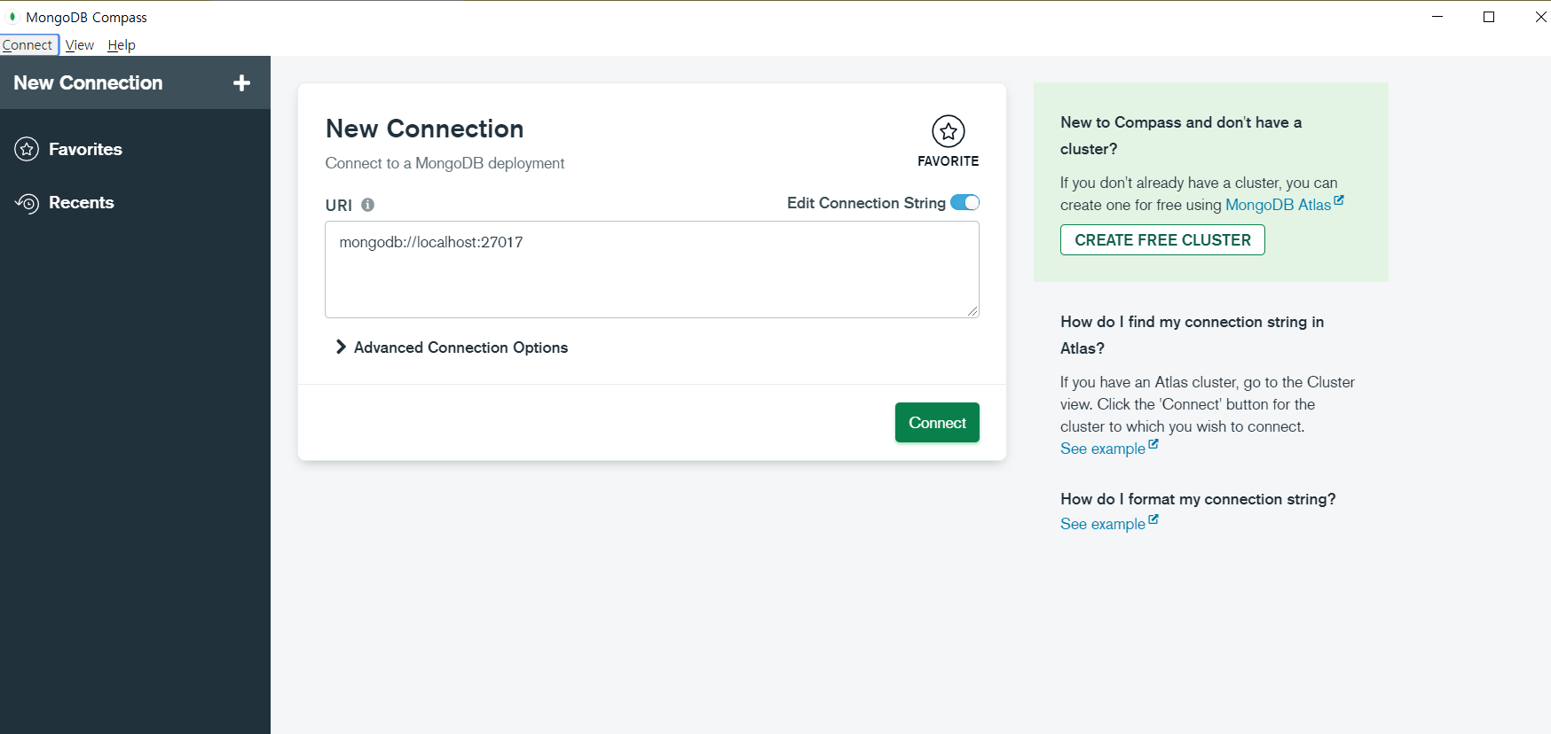6. 설치가 완료되면 MongoDB Compass가 실행된다