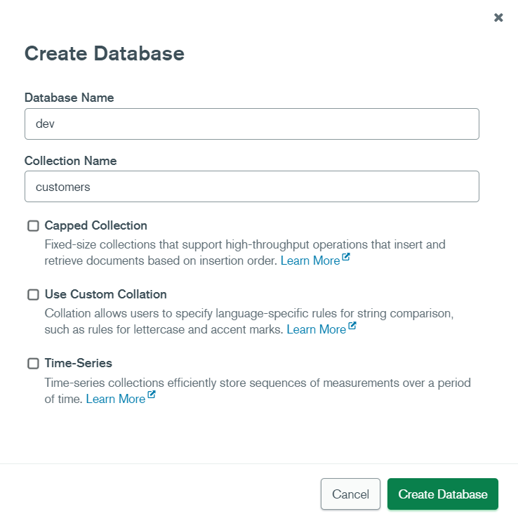 dev를 클릭하면 Collection - customers가 생성된 것도 확인할 수 있다