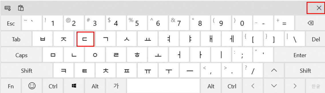 일단 터치 키보드를 열고 아무 키나 누른 뒤, 닫기를 누른다